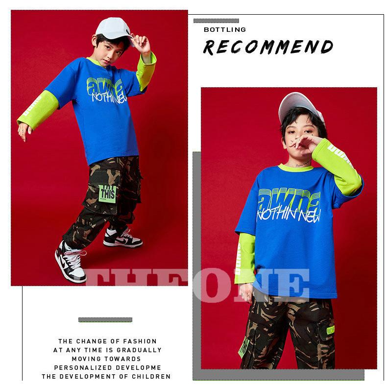 キッズダンス衣装 ガールズ 男の子 ヒップホップ 韓国 トップス 迷彩 パンツ へそ出し 応援団 Hiphop 派手 セットアップ ダンス衣装 キッズ 練習 品質検査済